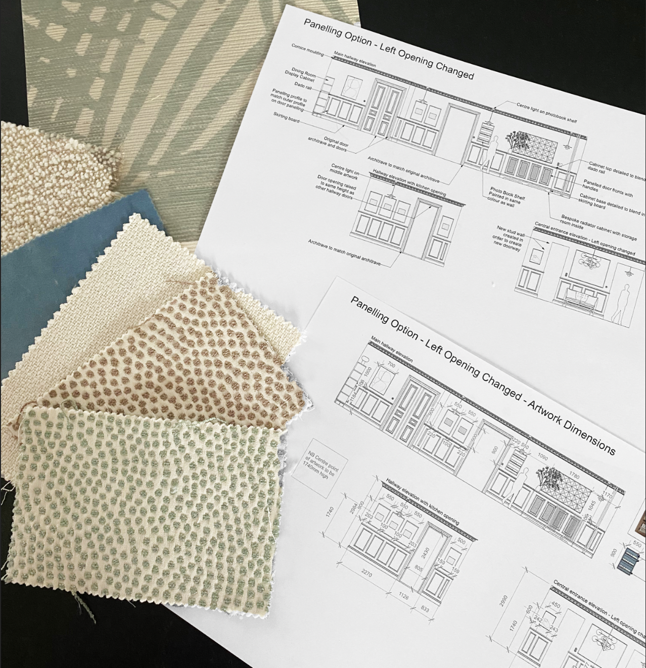 Looking for a complete renovation of an interior? Or perhaps you have bought a new home and need help from spacial planning right through to implementation? I can guide you through each step of the design process whether it’s a whole house or one bathroom. Throughout the project I will be in contact with the best professionals within the industry to help with quotations and design solutions. My process includes creating concept boards, spatial planning, technical drawings, sourcing furnishings, bespoke furniture design, sample boards as well as budget schedules. In order to ensure the project runs smoothly I keep in regular contact with each client and only proceed to the next stage of the project when they are happy. I will often visit showrooms and workshops with the client so they get a deeper understanding of the scheme as well as the quality of the products.
